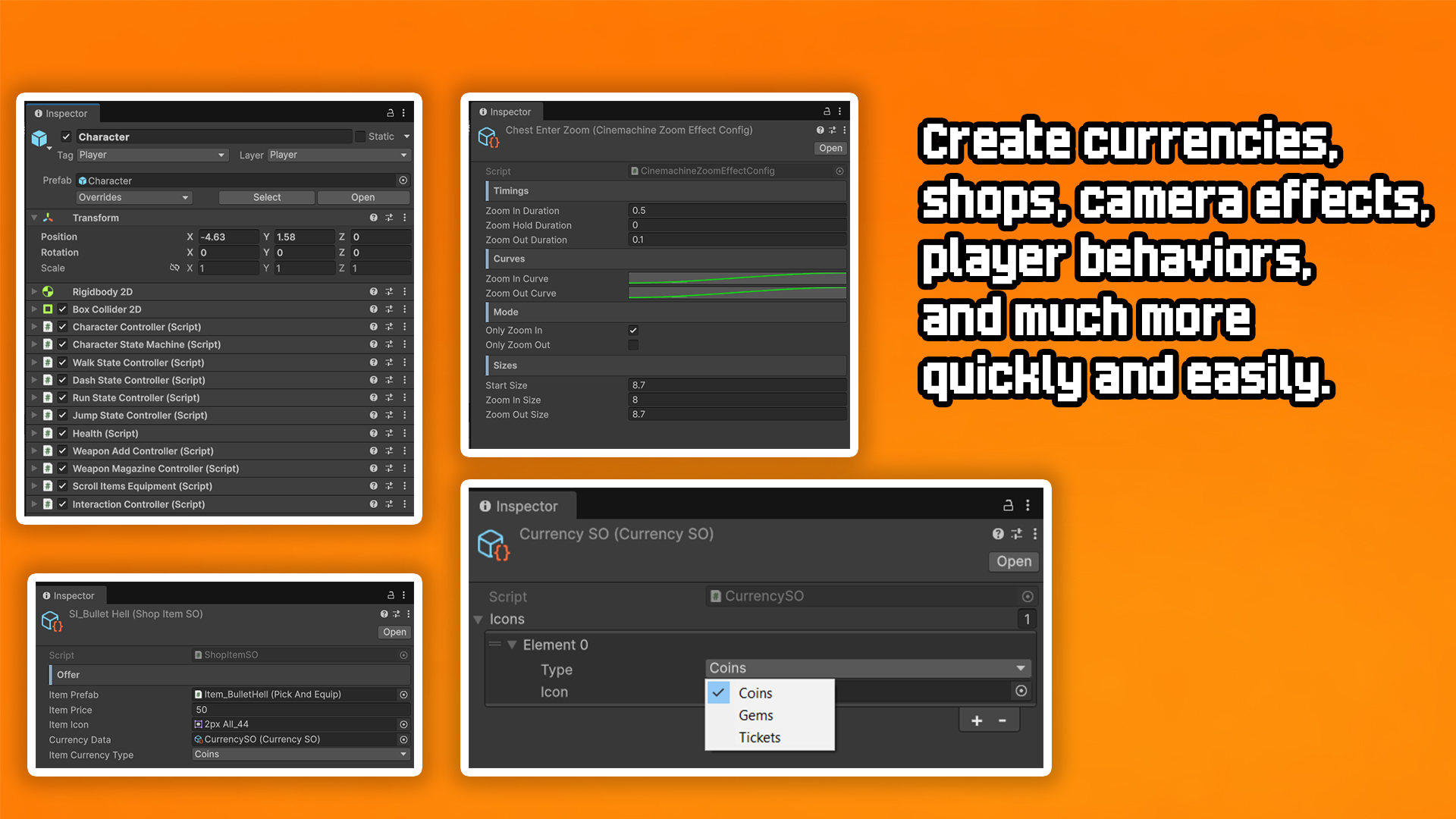 Top Down – Rogue-like Engine is a modular Unity framework built around Scriptable Objects and custom Editor tools.